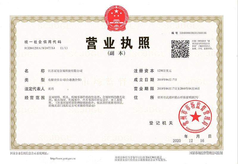 江蘇富冠金屬科技有限公司(以下簡(jiǎn)稱:“公司”)成立于2018年4月,隸屬于鑫昌泰集團(tuán),是常州市經(jīng)開(kāi)區(qū)招商引資的重點(diǎn)外資企業(yè),注冊(cè)資本1230萬(wàn)美元,座落于常州市經(jīng)開(kāi)區(qū)橫山橋智能裝備產(chǎn)業(yè)園,占地面積22762.8平方米,員工總數(shù)100人。公司主要經(jīng)營(yíng):金屬材料、模具、機(jī)械零部件的改性處理;金屬材料的激光處理;模具鋼材、機(jī)械零件、汽車(chē)零部件研發(fā)設(shè)計(jì)、加工及銷售。并具有真空淬火、普通淬火、調(diào)質(zhì)、去應(yīng)力回......